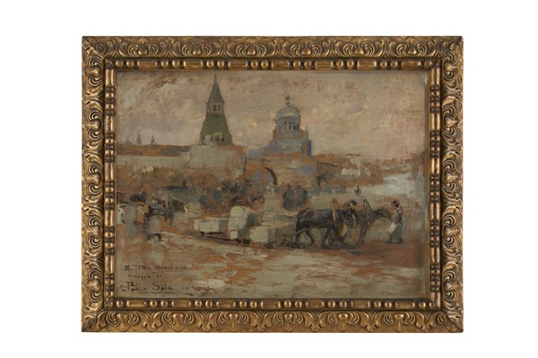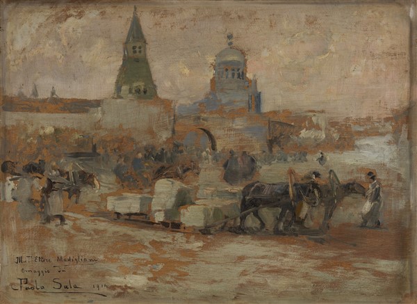 Paolo Sala "Scorcio russo" 1914 olio su tavola (cm 32x42) firmato, dedicato e da