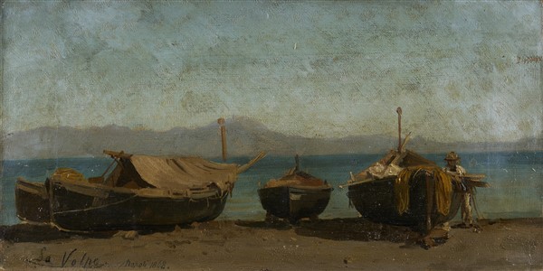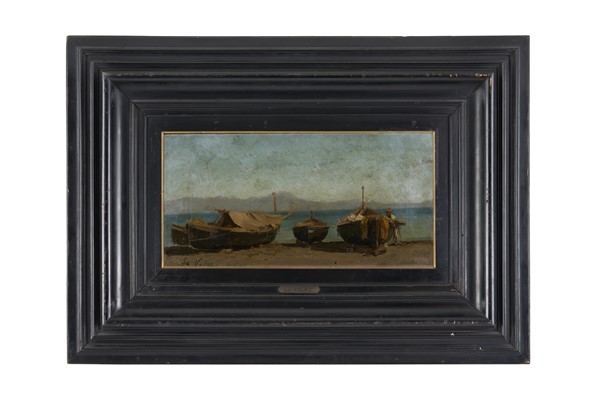 Alessandro La Volpe "Barche in secca" Napoli 1868 olio su tela (cm 21x41,5) firm