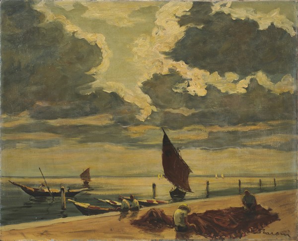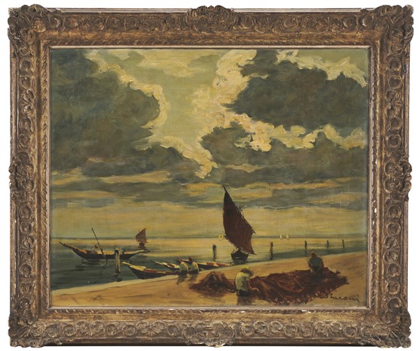Annibale Scaroni "Nubi (Laguna Veneta)" 1941 olio su tela (cm 65x80) firmato in