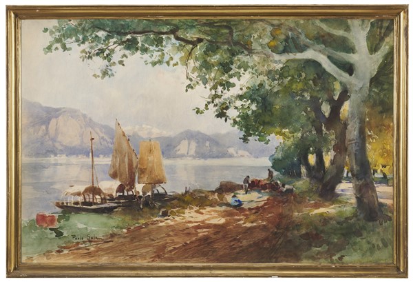 Paolo Sala "Lago di Como" acquerello su cartoncino (cm 65x100) firmato in basso
