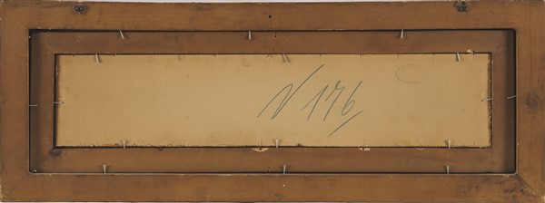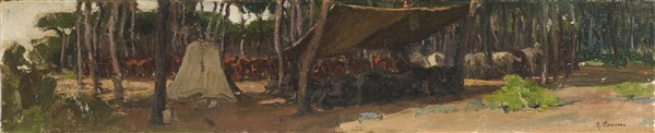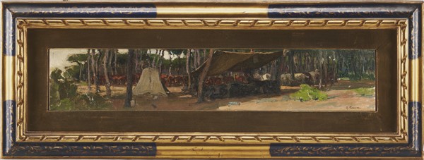 Ruggero Panerai "Accampamento" olio su tela applicata a cartone (cm 12x57) firm