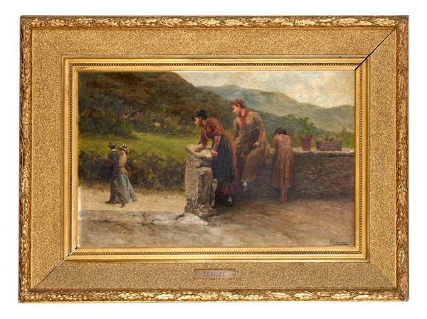 Giuseppe Zannoni "Curiose" olio su tela (cm 66x100) firmato in basso a destra i