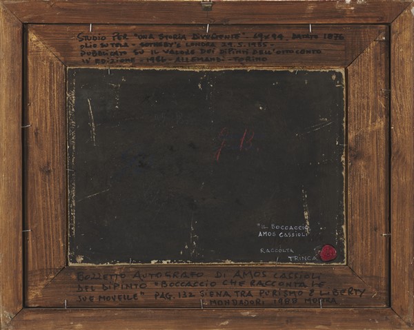 Amos Cassioli "Boccaccio che racconta le sue novelle" olio su cartone pressato