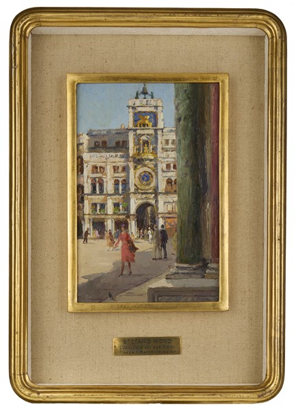 Stefano Novo "L'orologio dei due Mori, Piazza San Marco" olio su compensato (cm