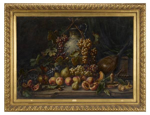 Giuseppe Falchetti "Composizione con frutta" olio su tela (cm 92x132) firmato i