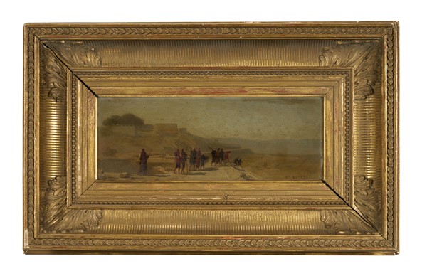 Auguste Bouchet "La carovana" olio su tavola (cm 11x29) firmato in basso a dest