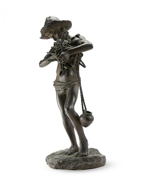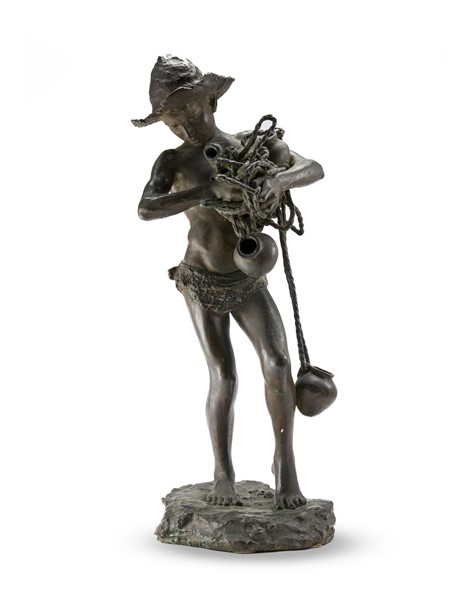 Achille D'Orsi "Pescatorello" scultura in bronzo (h cm 52) firmata alla base (