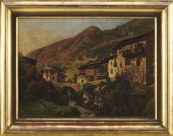 Giovan Battista Ferrari "Crana - Val Vigezzo" 1873 olio su tela (cm 30x44) firma