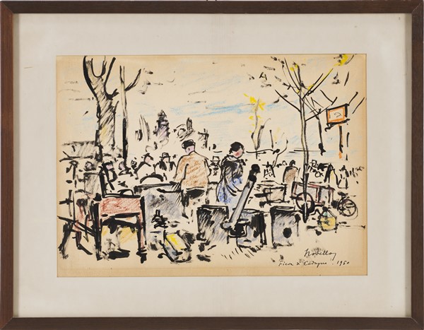 Giuseppe Novello "Fiera di Codogno" 1950 tecnica mista su carta (cm 25x34,5) fir