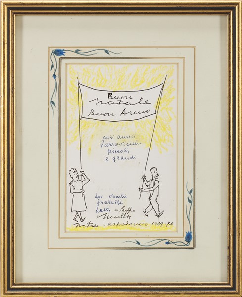 Giuseppe Novello "Buon Natale e Buon Anno" 1969-1970 tecnica mista su carta (cm
