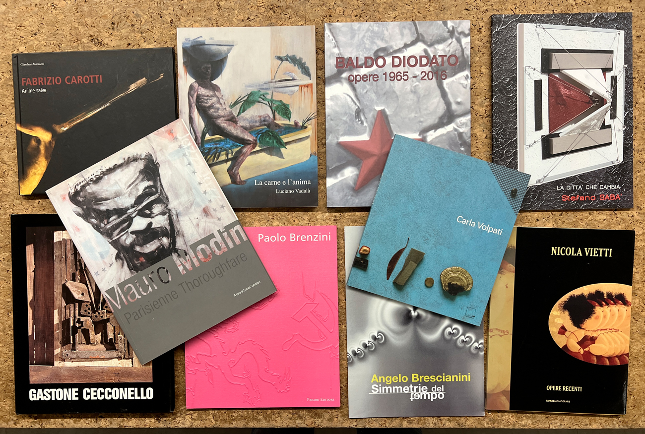 Lotto unico di 10 cataloghi relativi ai seguenti artisti: Baldo Diodato, Stefano Sabà, Mauro Modin, Luciano Vadalà, Carla Volpati, Nicola Vietti, Fabrizio Carotti, Angelo Brescianini, Paolo Brenzini e Gastone Cecconello