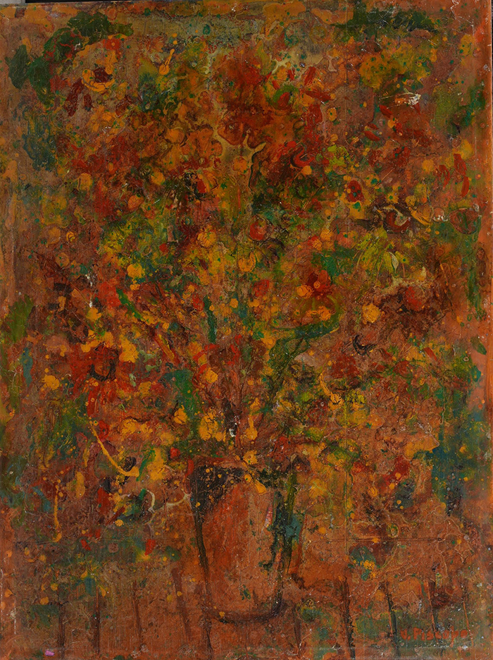 Piscopo Vittorio (Acerra, NA 1913 - Napoli 2004) Vaso con fiori olio su tavola, cm 40x30 firmato in basso a destra: V. Piscopo