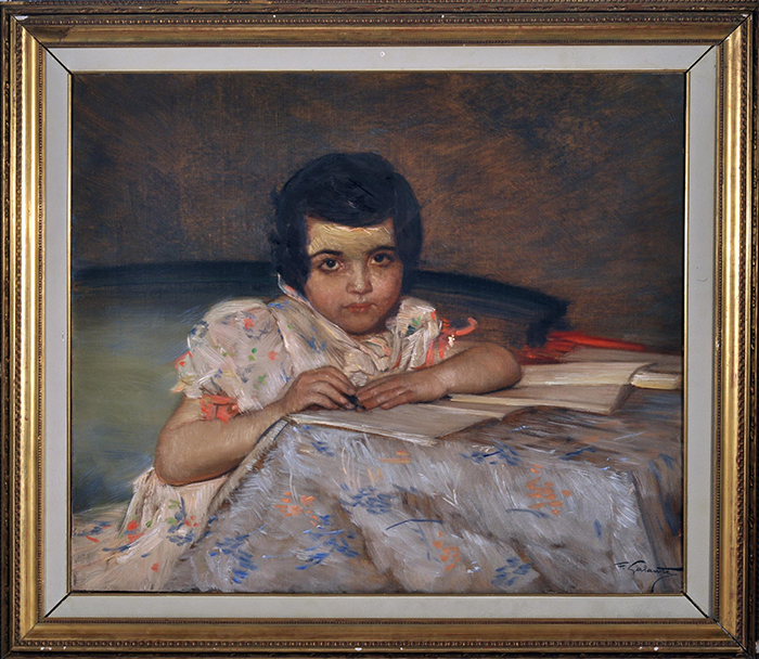 Galante Francesco (Margherita di Savoia, FG 1884 - Napoli 1972) I compiti olio su tela, cm 60x70 firmato in basso a destra: F. Galante