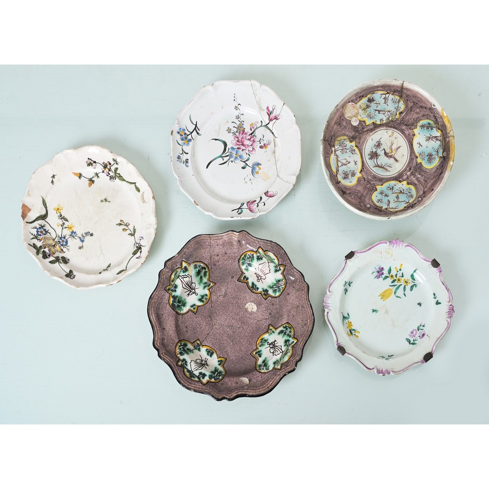 MANIFATTURA ITALIANA DEL XIX/XX SECOLO, 4 piatti e crespina
