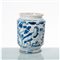 Piccolo cilindro in ceramica smaltata e decorata dipinta a mano nei toni del bianco e del blu raffigurante "Figura antropomorfa".