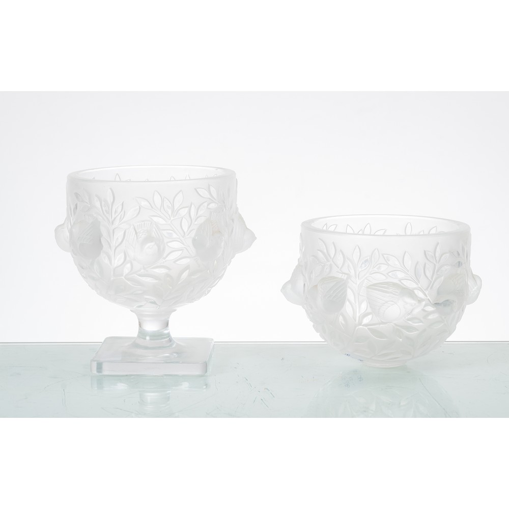 Due piccole alzate in cristallo lavorate a rilievo (una base mancante).