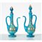 COPPIA DI PICCOLE BOTTIGLIE in opaline nei toni del turchese decorate in oro.