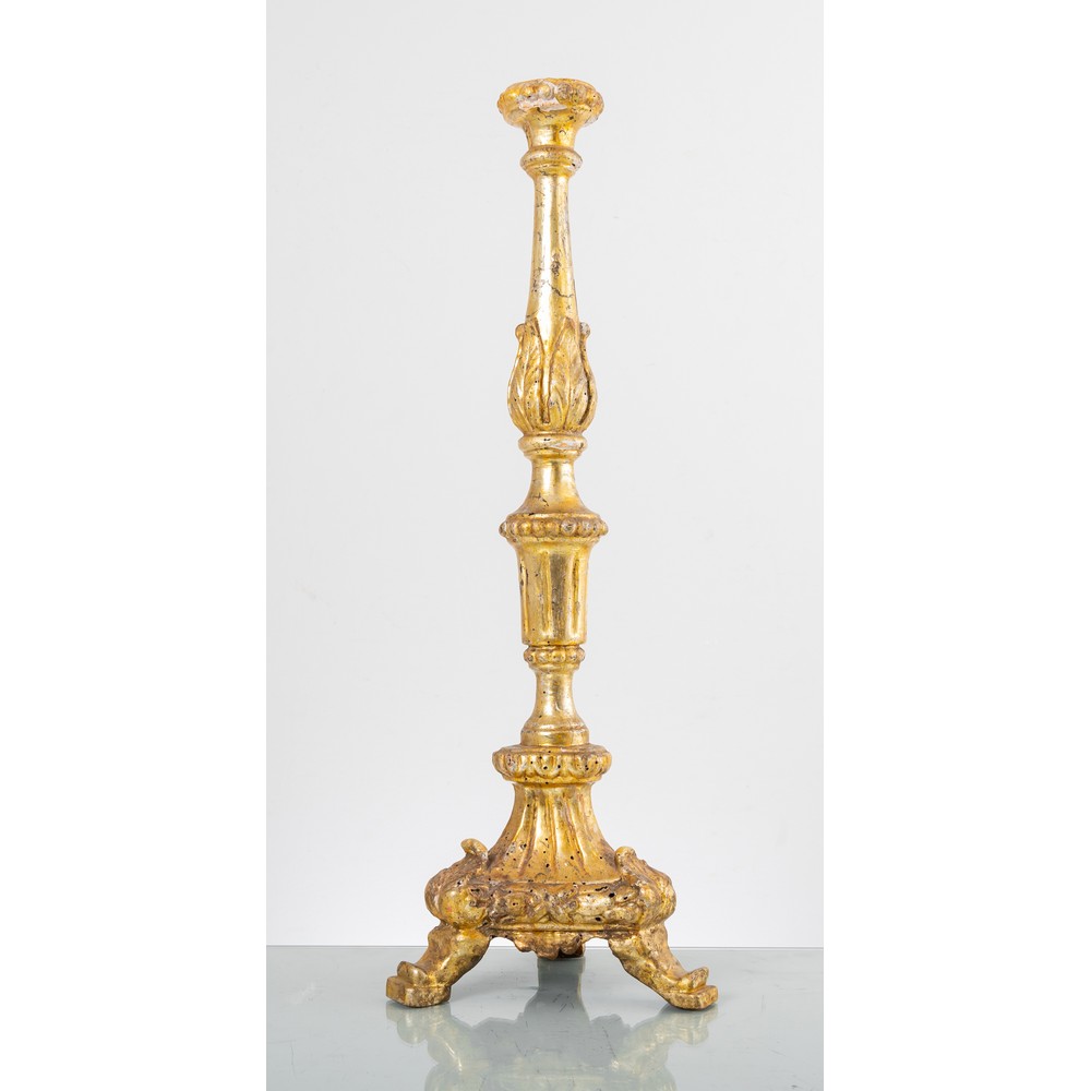 Candeliere Luigi XVI in legno dorato ad argento a mecca.