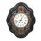 Orologio a occhio di bue in legno ebanizzato e noce con intarsi in madreperla, quadrante in alabastro con numeri romani.
