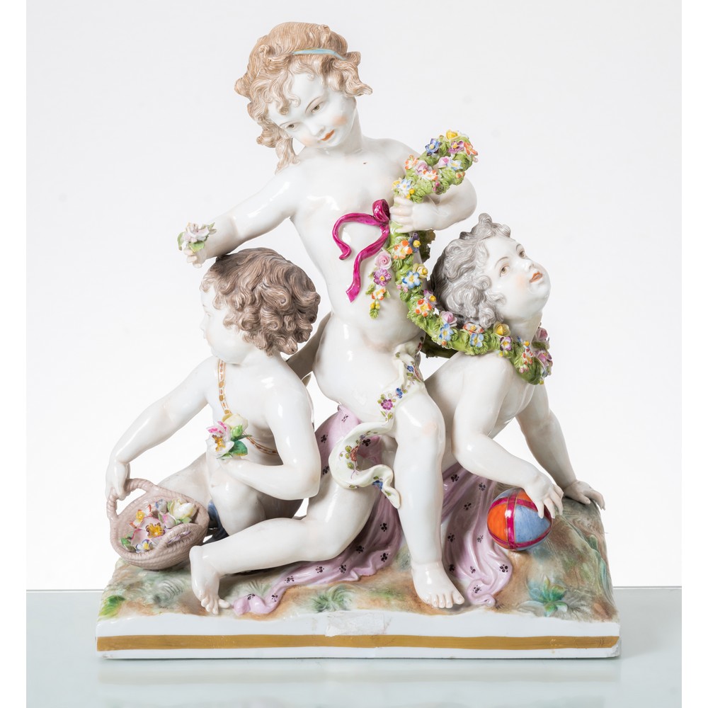 GRUPPO in porcellana raffigurante "Gioco di bambini" (usure).