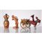 Carretto in legno dipinto con cavallo in cartapesta, scultura in terracotta raffigurante "Figura maschile" e bottiglia in ceramica smaltata e decorata.