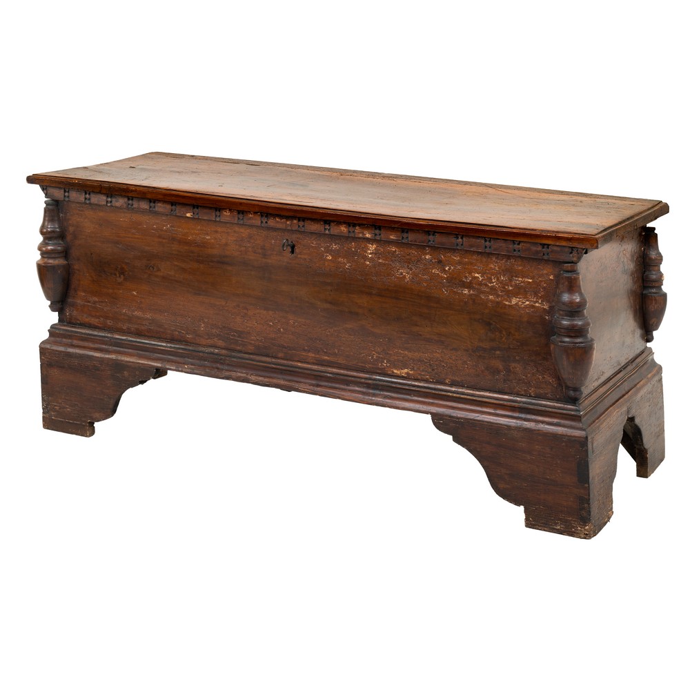 Cassapanca in legno di noce.