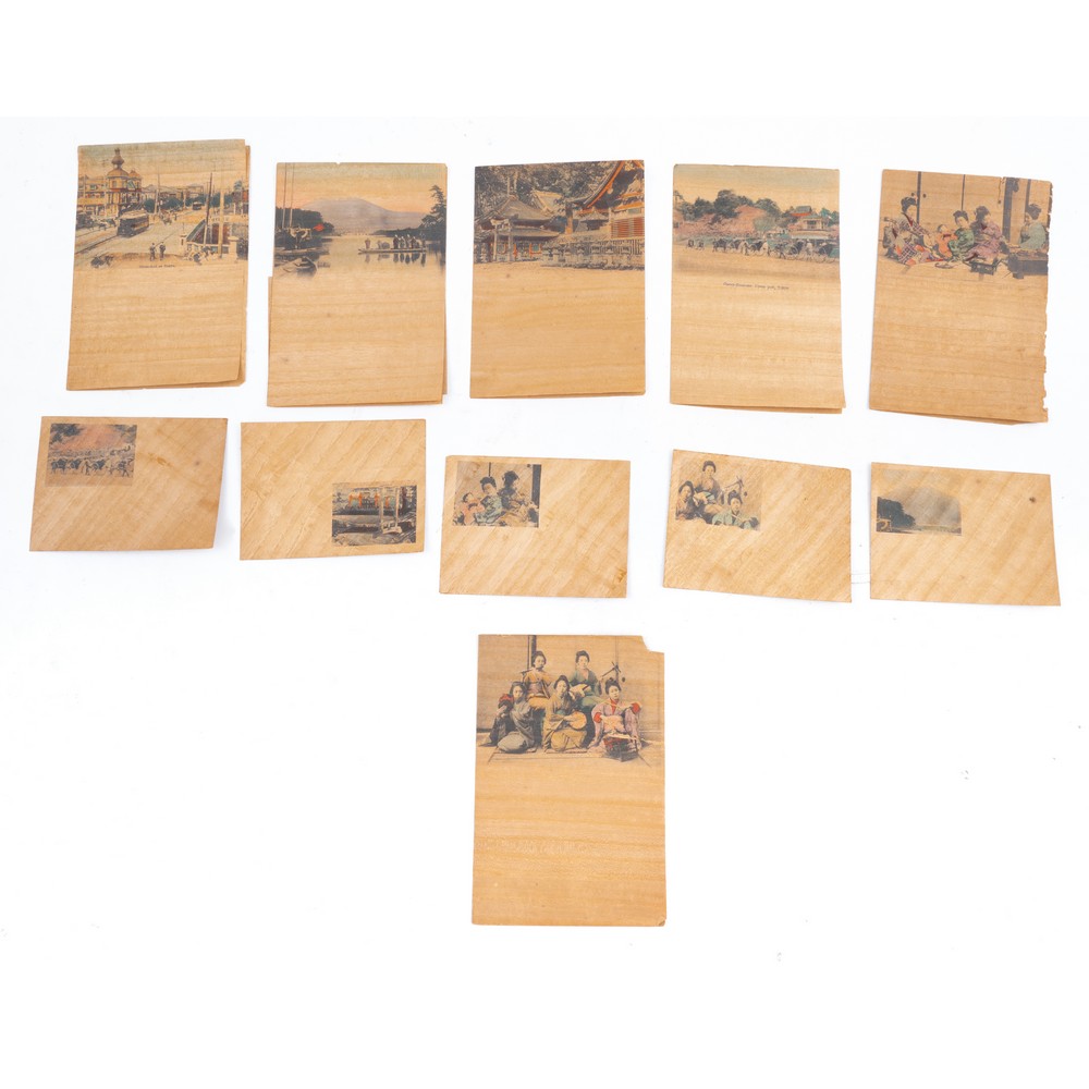 SET DI CARTA DA LETTERE GIAPPONESE DELLA PRIMA META’ DEL ‘900. Il set è composto da 6 fogli e sei buste di spedizione in carta giapponese denominata whasi . I fogli di carta da lettera e le relative buste sono contraddistinte da riproduzioni fotografiche a colori realizzate a specchio.