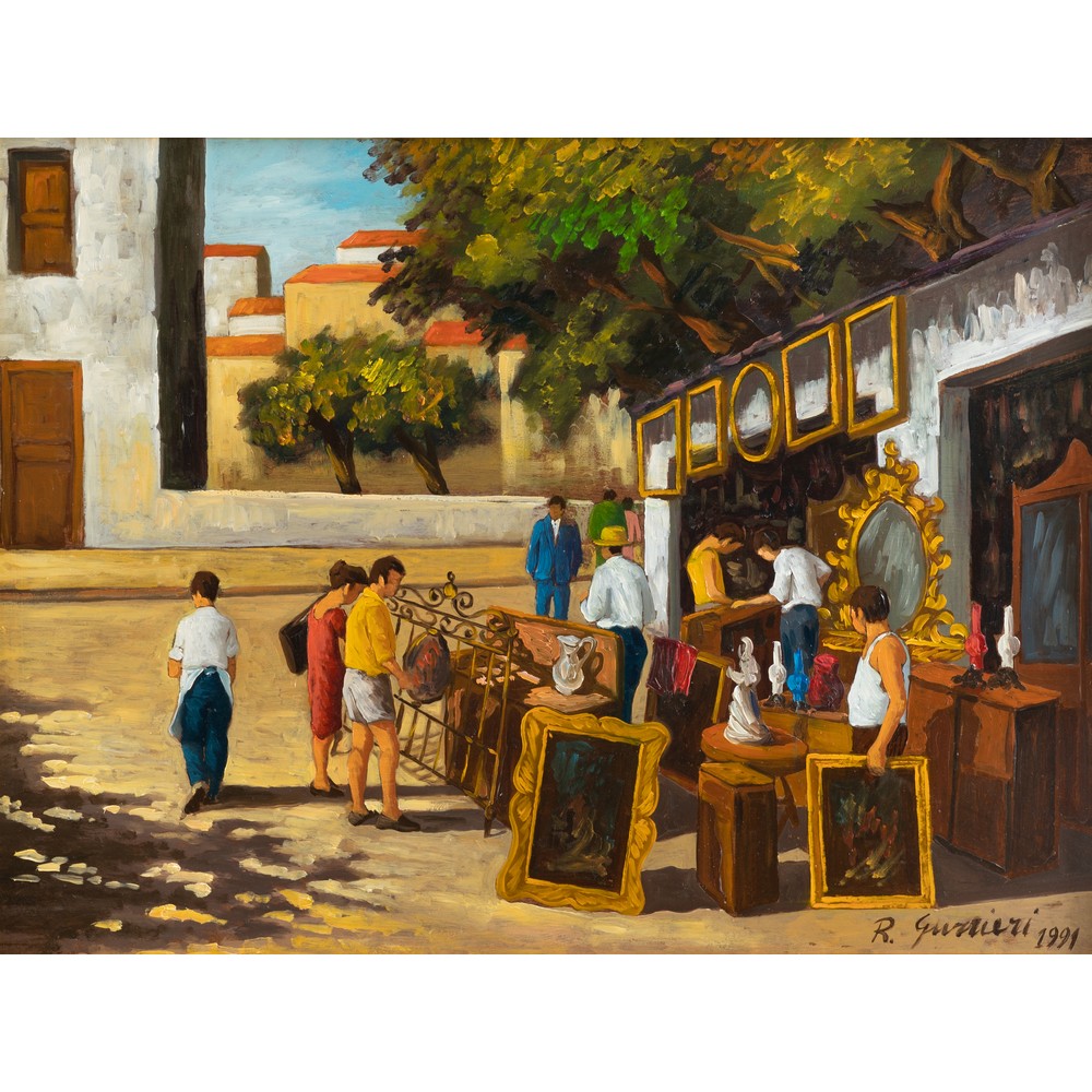 RODOLFO GURRIERI, Mercato delle Pulci, Olio su masonite