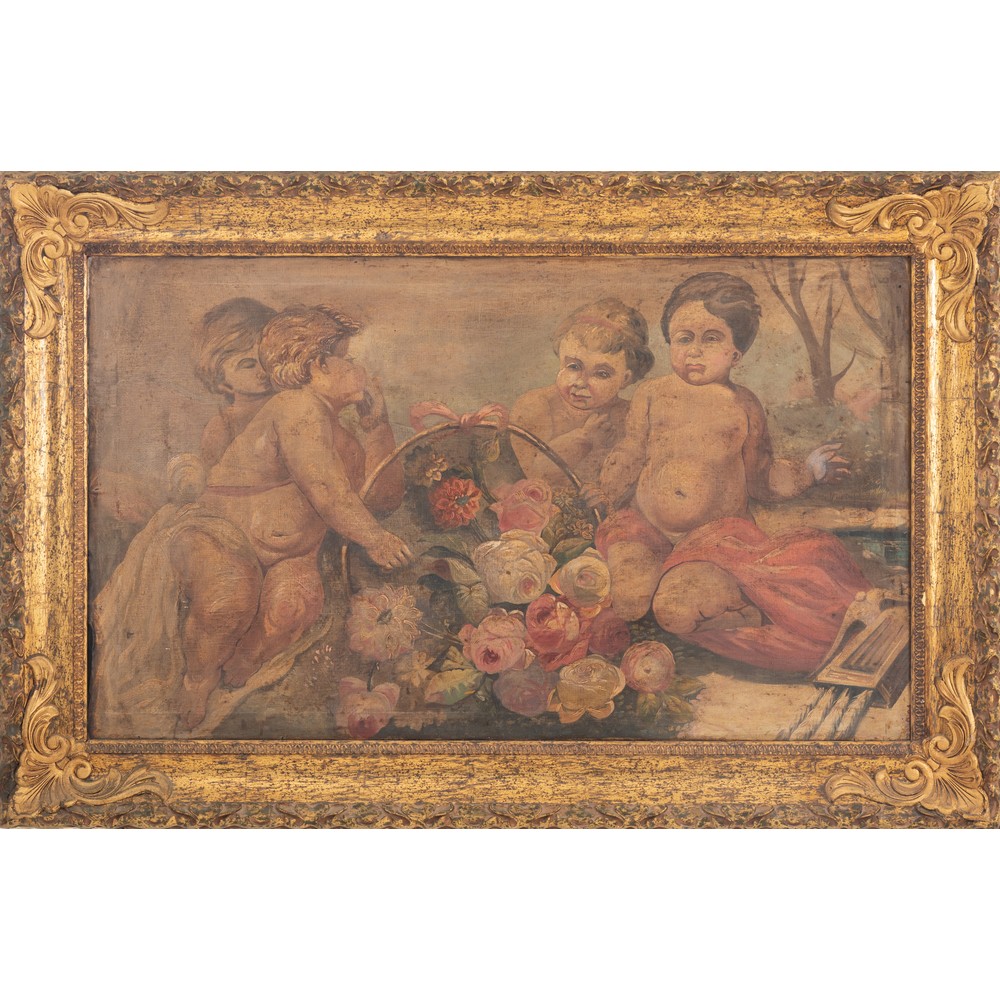 ANONIMO DEL XX SECOLO, Gioco di Putti, Olio su tela
