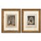 Coppia di cornici in legno e pastiglia dorata con all'interno incisioni raffiguranti "Abbazie".