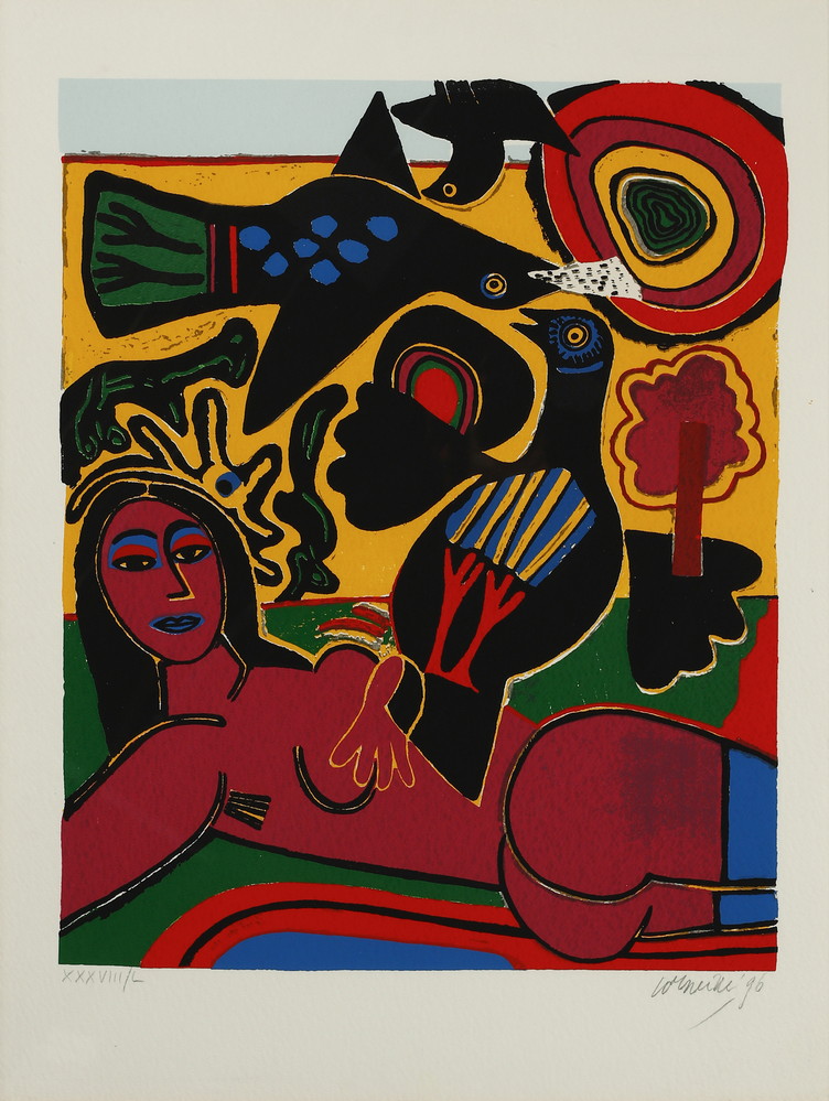 CORNEILLE (1922 - 2010) FEMME ET FLEUR. 1996. Serigrafia. Cm 57,50 x 75,50. firma, data, tiratura a matita es XXXVIII/L