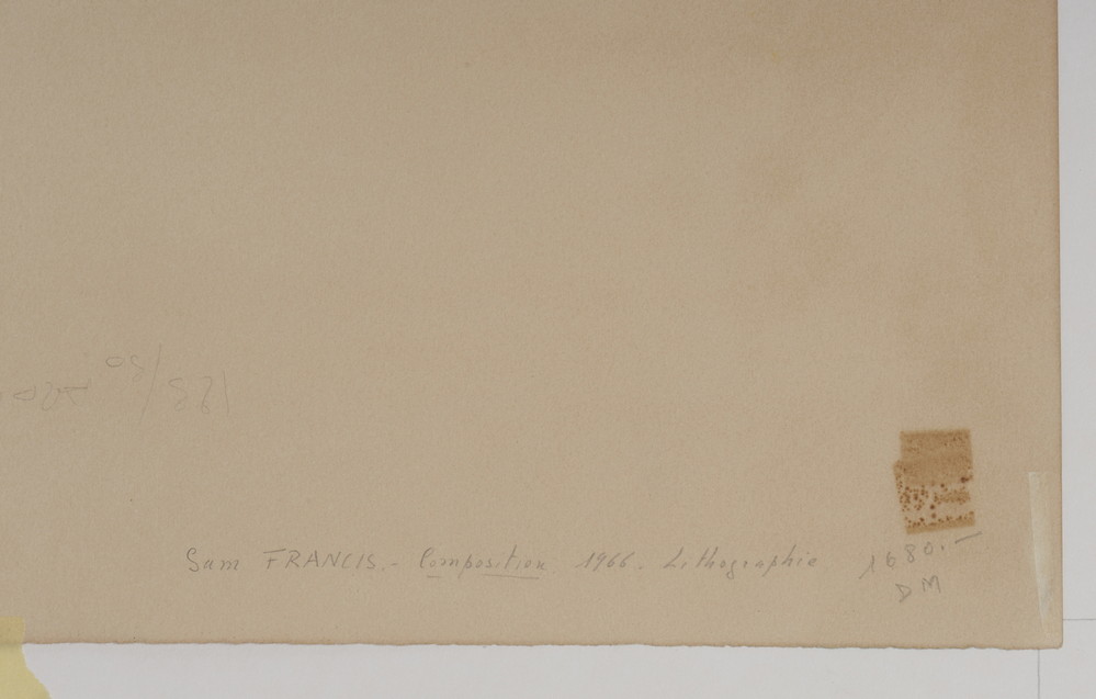 FRANCIS SAM (1923 - 1994) SENZA TITOLO (NATIONAL COLLECTION OF FINE ART PORTFOLIO), 1968. litografia. Cm 53,50 x 74,00. firma e tiratura a matita, es. 69/144.