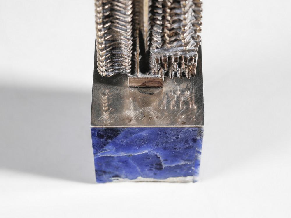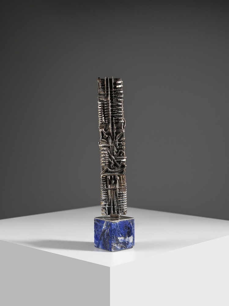 POMODORO ARNALDO (n. 1926) STELE PER BOLAFFI-ARTE. 1977. argento e sodalite. Cm 4,00 x 24,50 x 4,00. firma e tiratura incisi alla base, es. 40/90