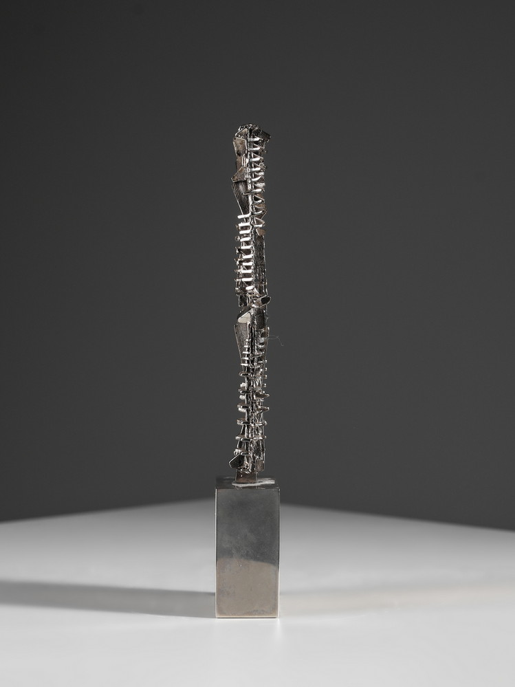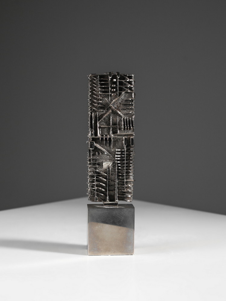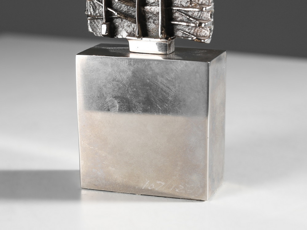 POMODORO ARNALDO (n. 1926) STELE PER MONTEDISON. 1981. bronzo argentato e ottone cromato. Cm 5,00 x 19,00 x 2,50. firma e tiratura incise alla base, es. 107/120