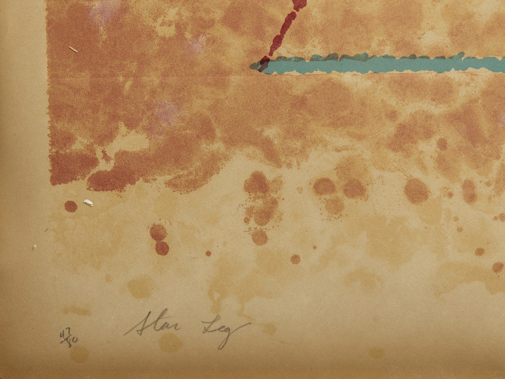 ROSENQUIST JAMES (1933 - 2017) STAR LEG. 1974. litografia a colori, rilievo e collage con corda e pietra. Cm 65,00 x 92,00. tiratura, firma, titolo e data a matita, es. 47/80