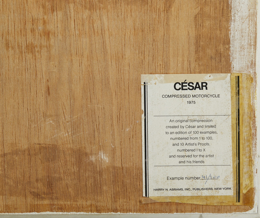 CESAR (1921 - 1998) COMPRESSION DE MOTO. 1975. Multiplo. Cm 61,00 x 51,00 x 4,50. firma e data; es. 41/100
