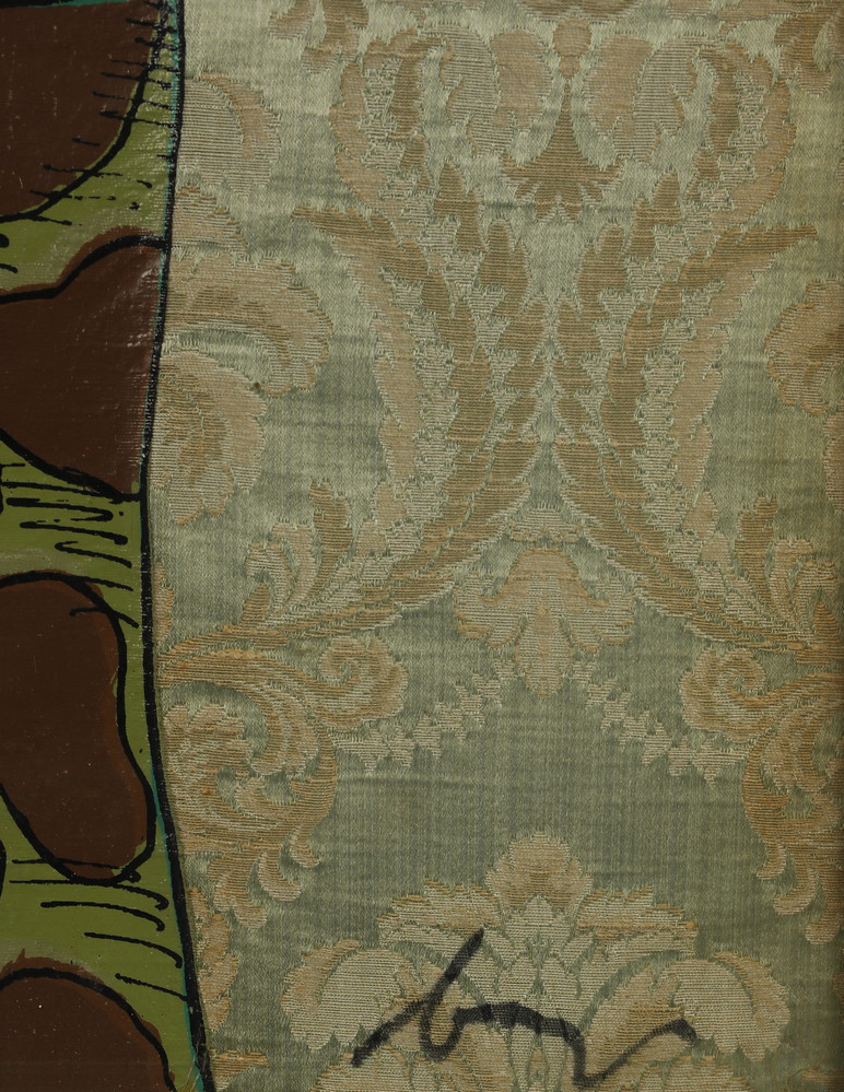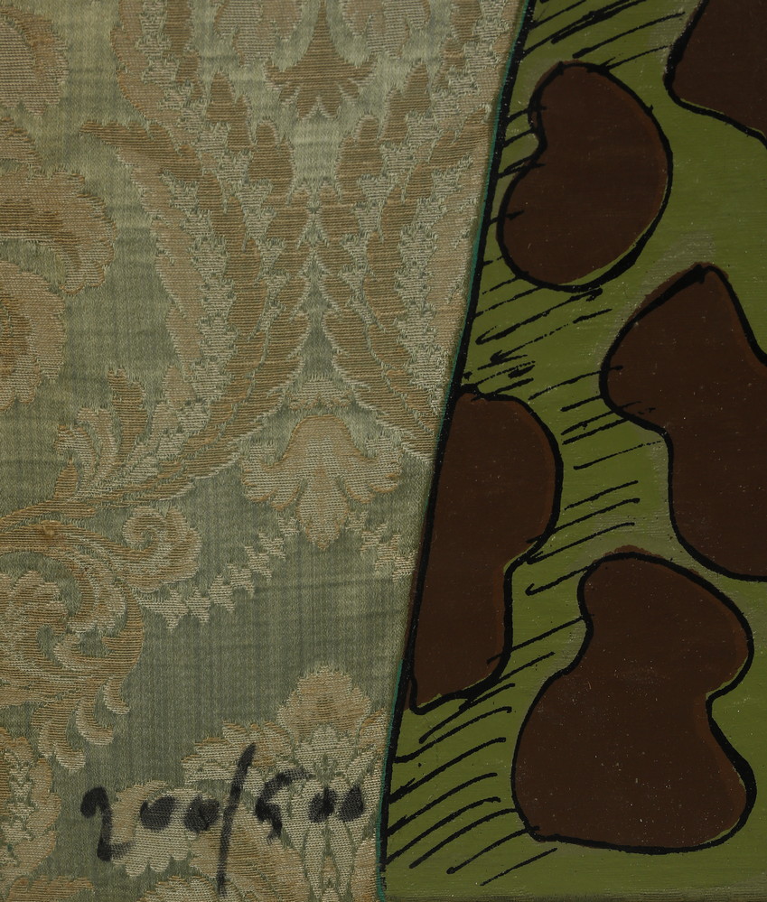 BAJ ENRICO (1924 - 2003) LO STRATEGA DEL DOPPIOGIOCO. 1971. serigrafia su tessuto e collage. Cm 74,00 x 103,00. firma e tiratura a pennarello, es. 200/500