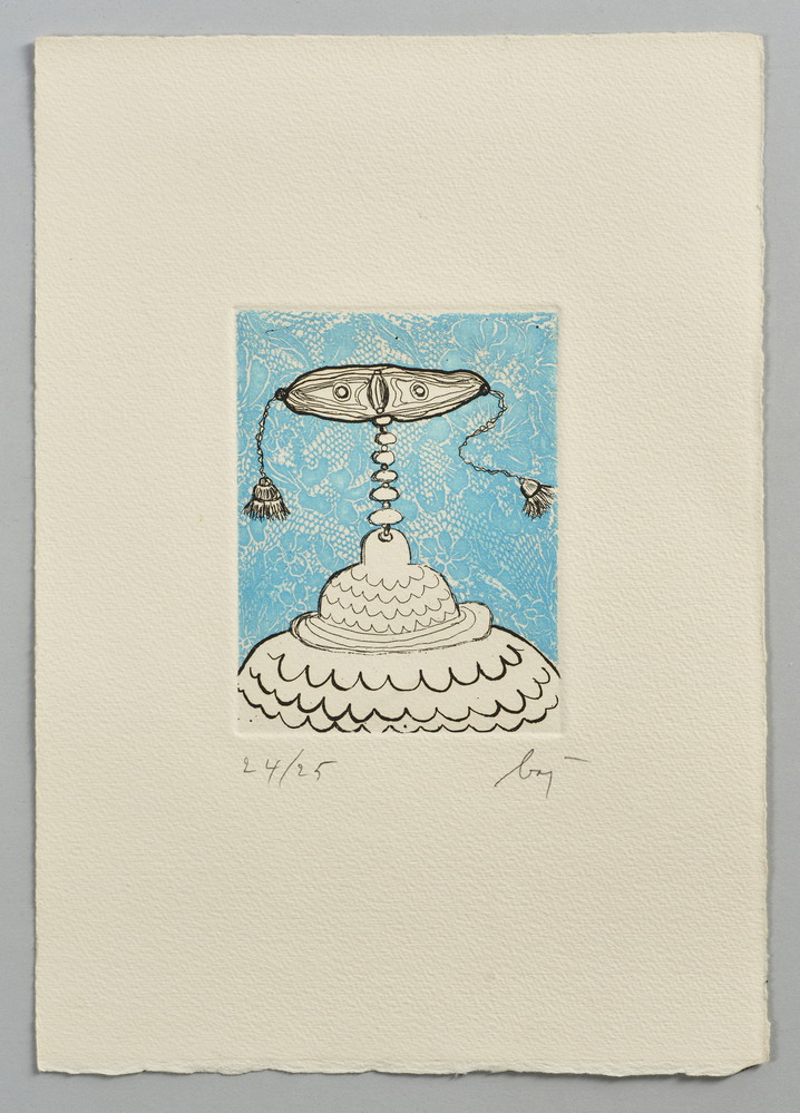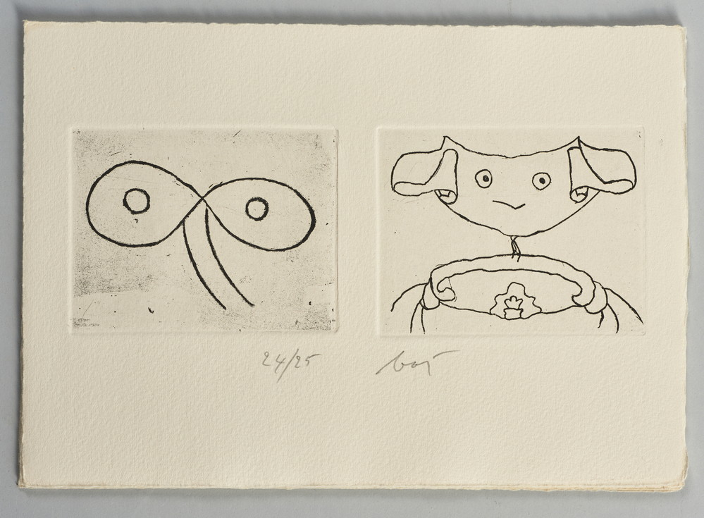 Sul fronte della cartella è presente un'acquaforte firmata e numerata 24/25, la dimensione della lastra è di 11x31,5 cm.