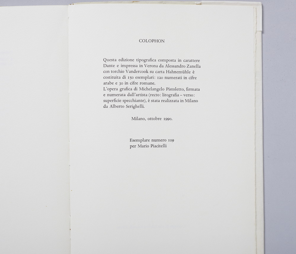 (cit. Michelangelo Pistoletto, Cristopher Marlowe, Ero e Leandro, Edizioni Rizzardi, arte e cultura, Milano 1990, p. 9 )