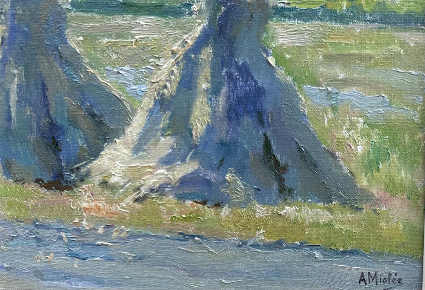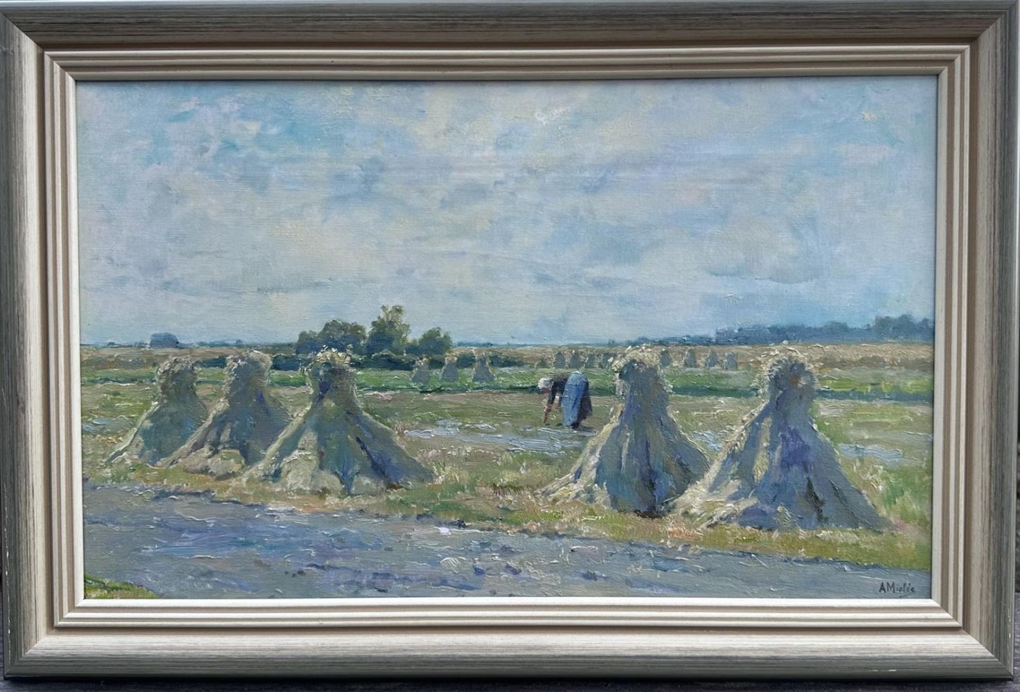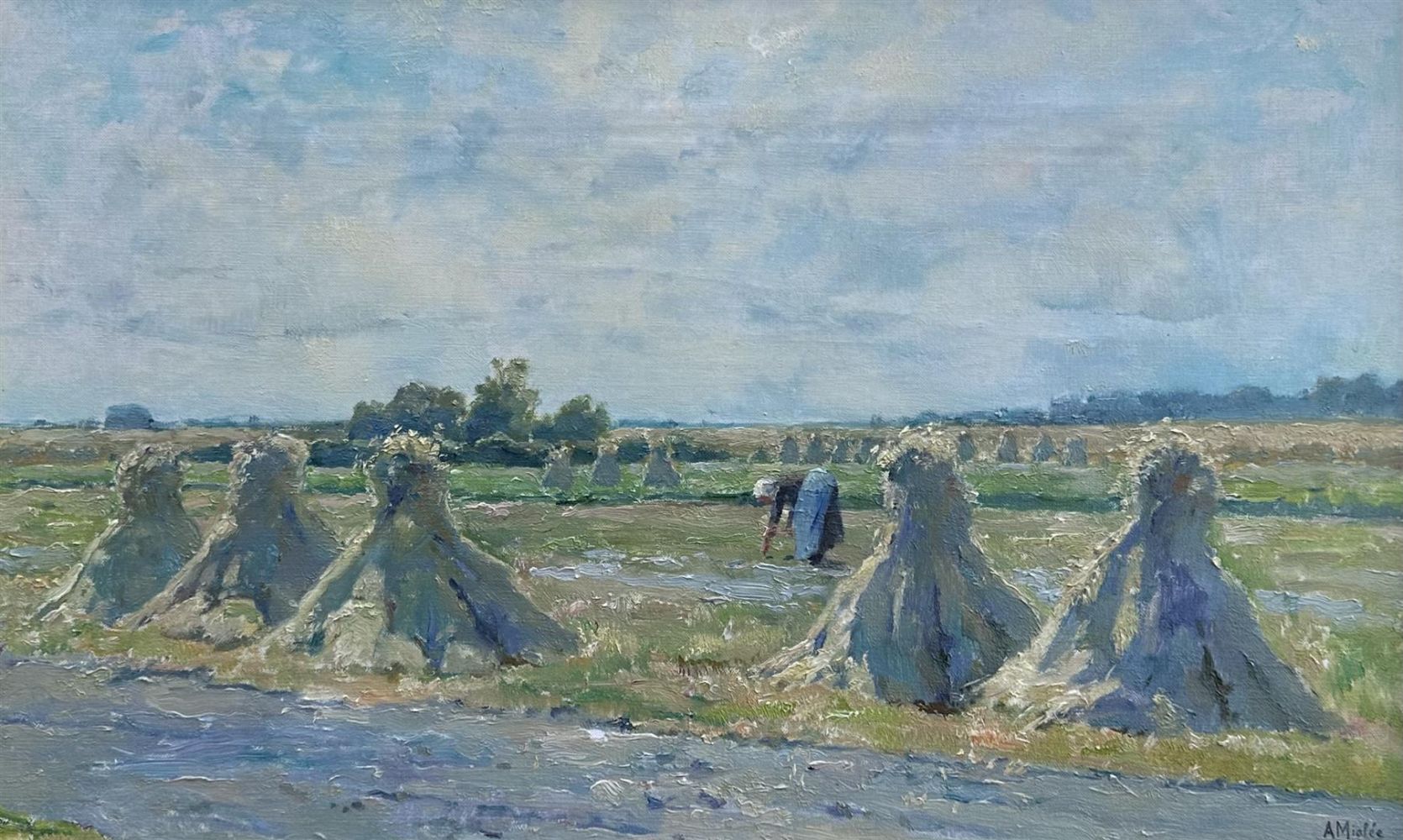 A. Miolée, Wheatsheaves - "Zomermorgen Vierhouten", signed (lower right), and annotated with title (on the stretcher frame), oil on canvas.