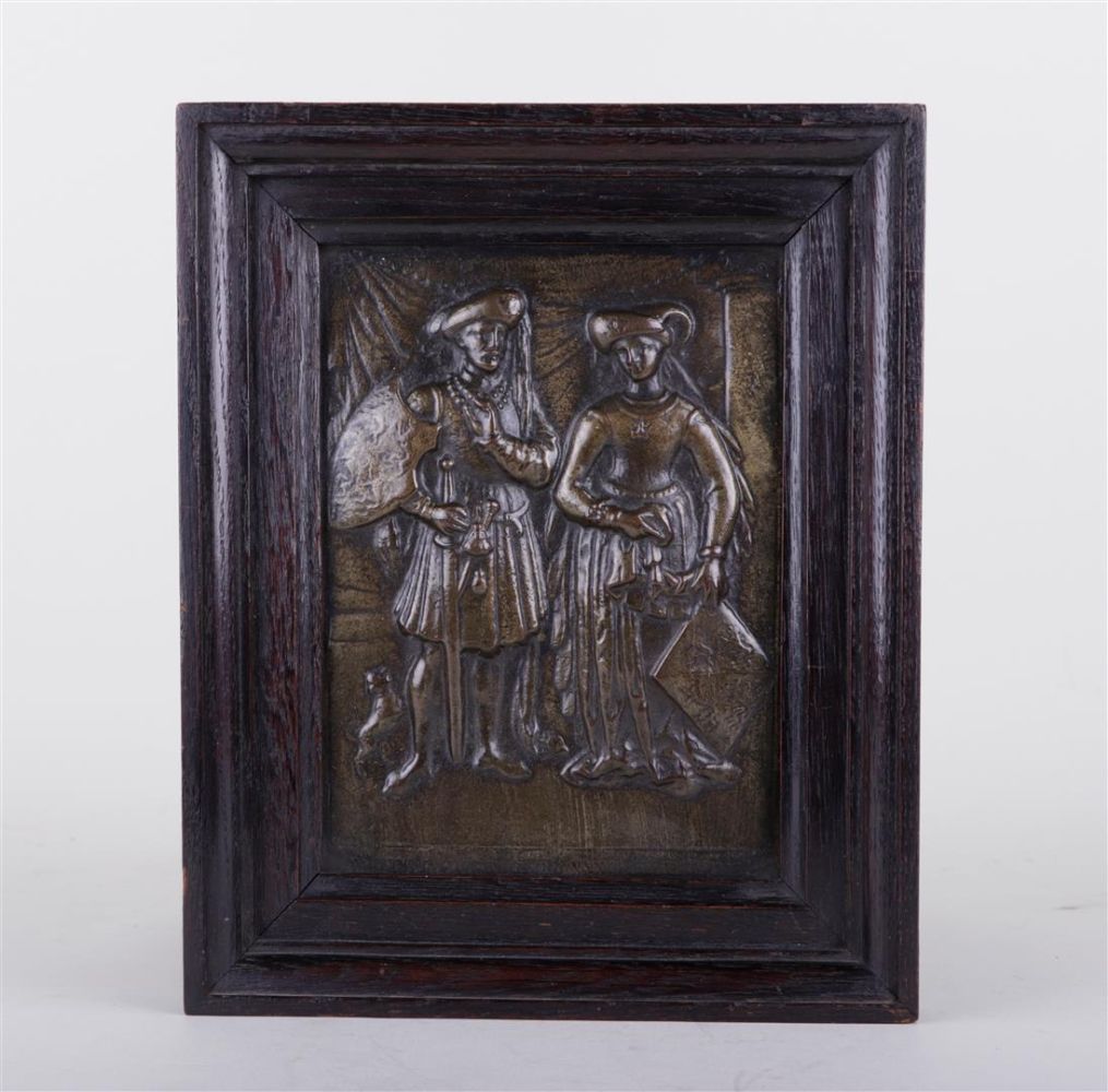 A patinated copper plaque depicting Magdalena of Brandenburg.