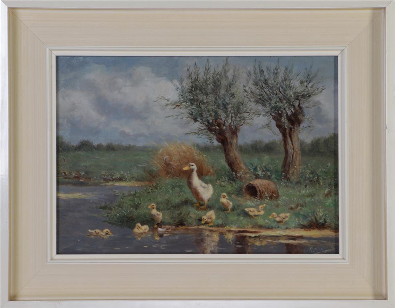 Lot 1052 | Hendrik Breedveld (1918 - 1999), Mother duck with ducklings at the water's...