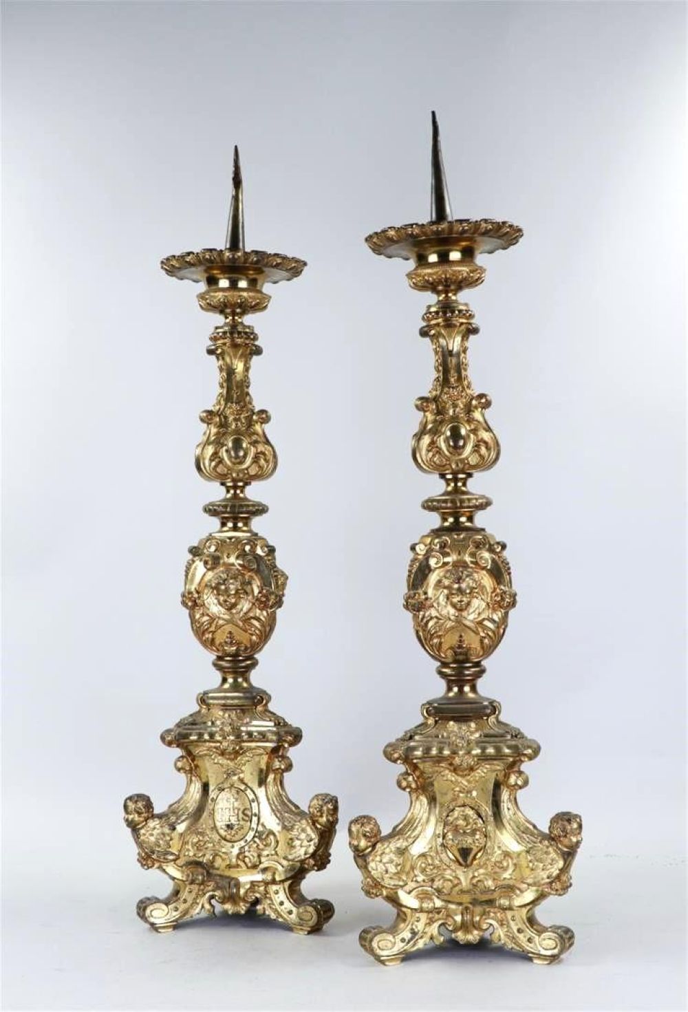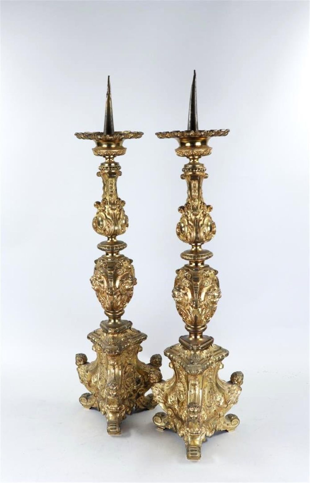 Lot 1064 | A pair of large gilt bronze altar candlesticks. France, 1st half 19th...
