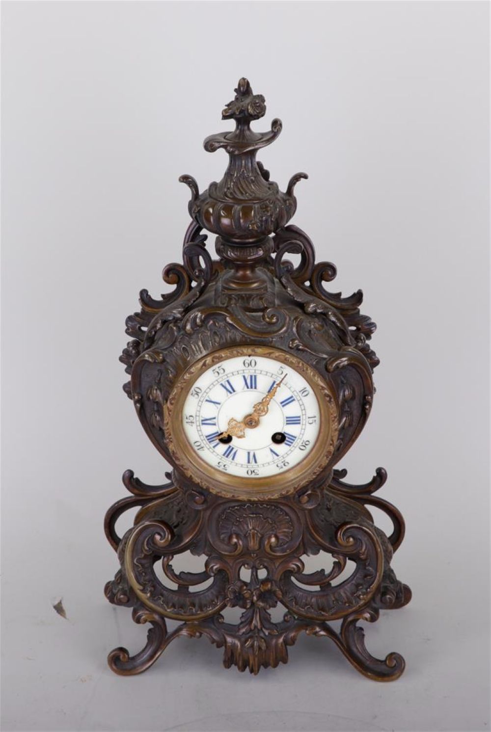 A bronze rococo style mantel clock. France, 19th century.43 x 23 cm.