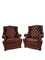 A lot of (2) tufted Chesterfield style wing chairs upholstered in brown...