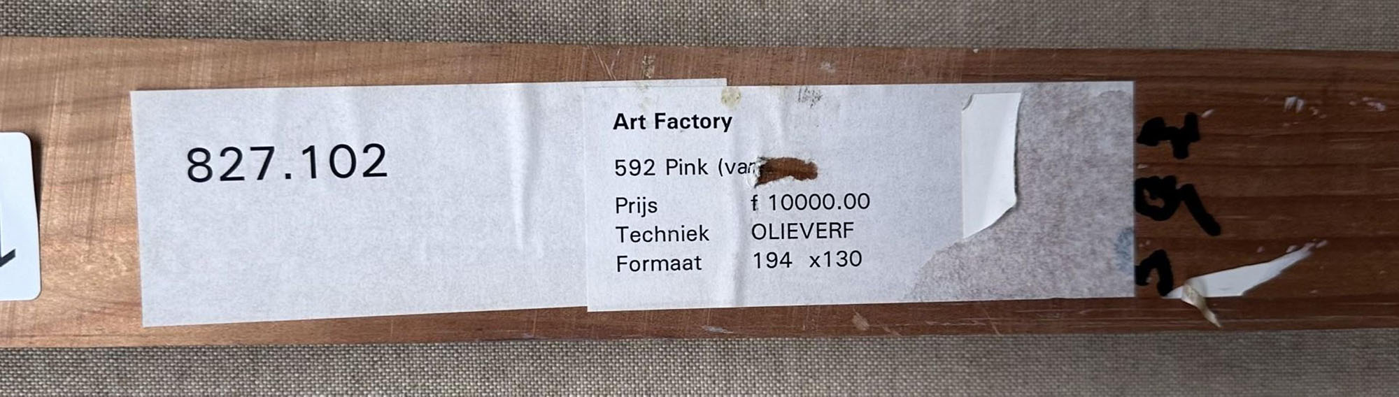 Hannes van Es (born 1950), "Pink" (signed, and , dated '1987', and annotated "III" (verso), oil on canvas, NB: minor damage (center right), visible in the photo.