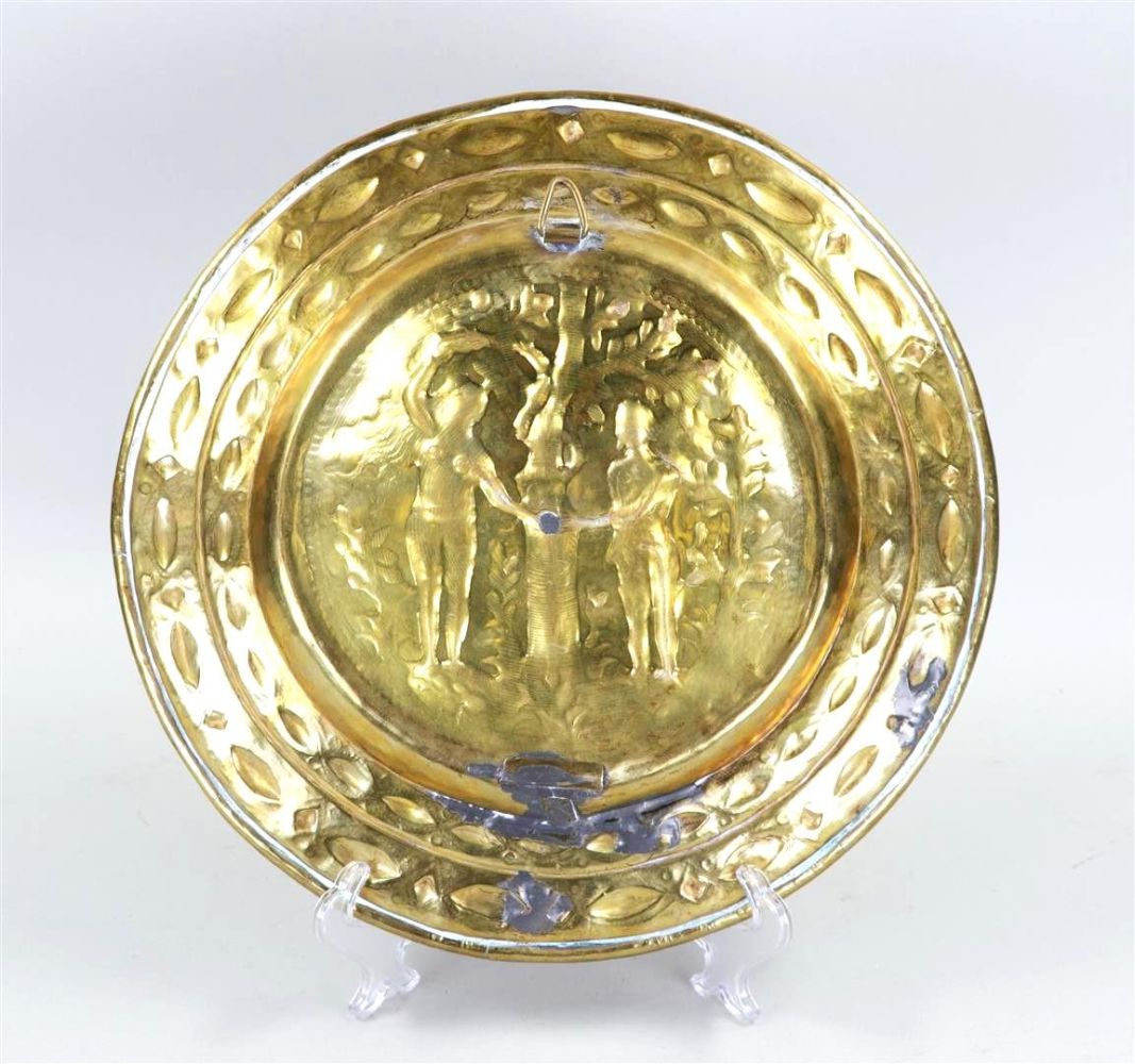 A Nuremberg baptismal dish depicting Adam and Eve at the tree of life. Germany, 17th century.