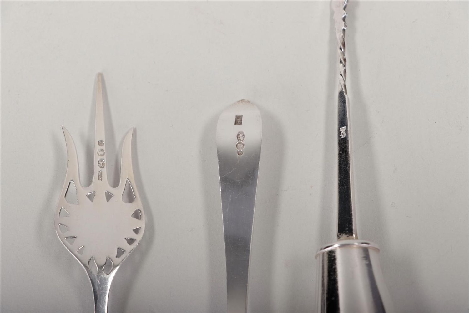 Lot 1111 | A lot of various silver, including a tray, a pickle fork, a cake server, a...