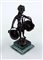 A bronze patinated sculpture of a girl with baskets, honed on a green marble...