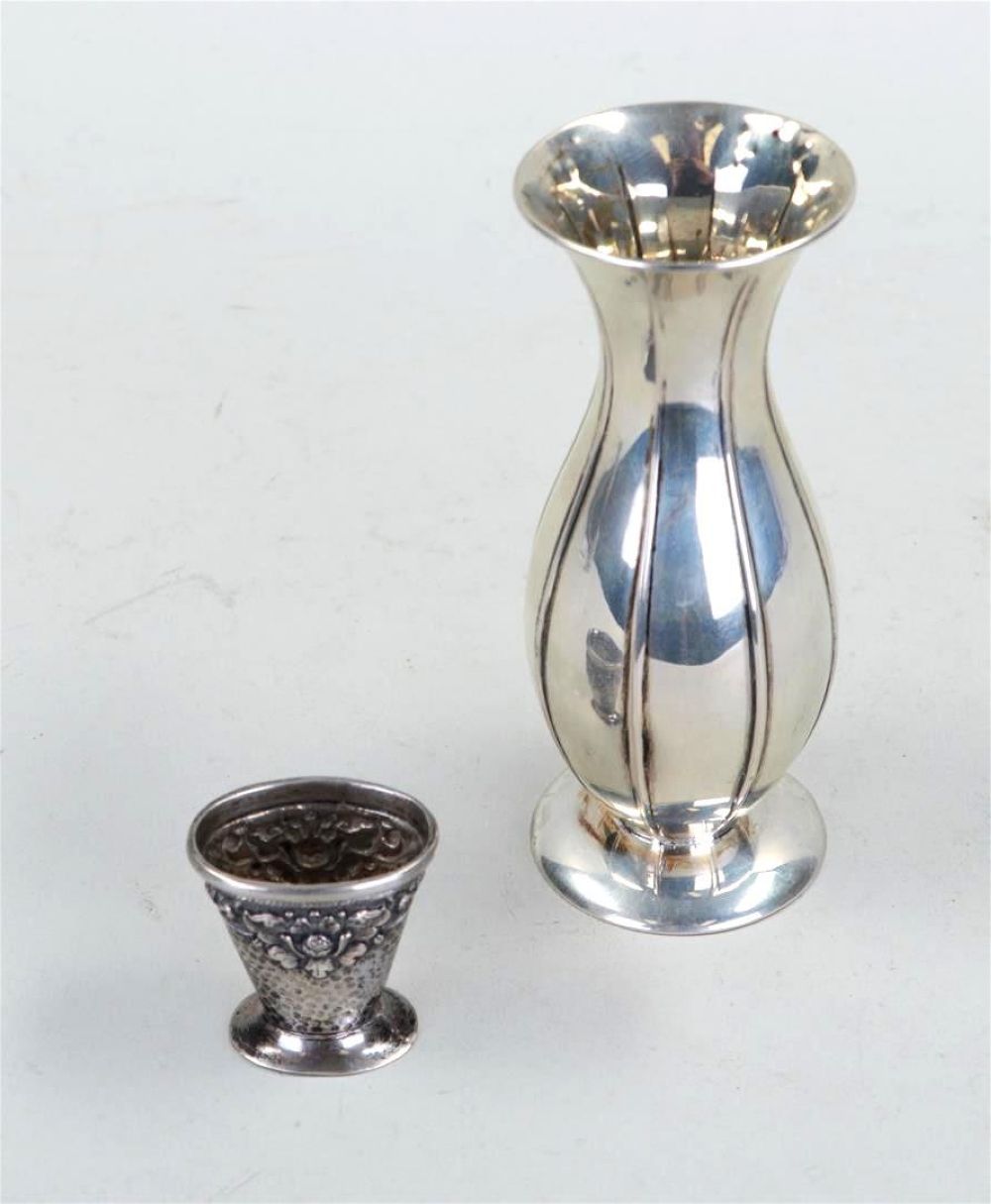 A lot of various silver including a flower vase, a pill box, a salt cellar, a...